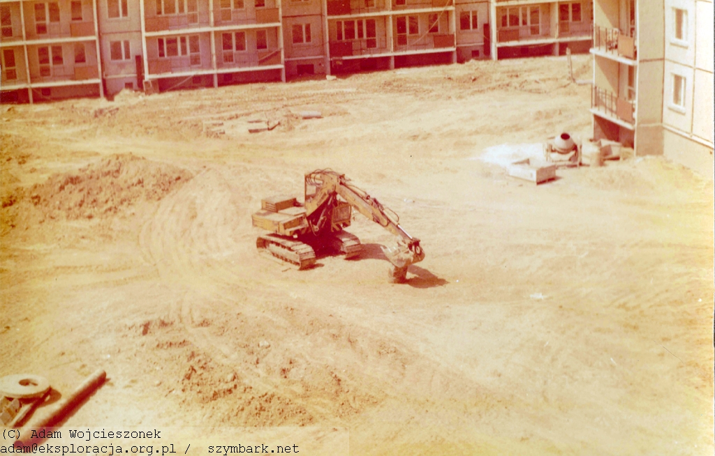 Koparka, którą często się bawiliśmy. Na wprost nie oddany do eksploatacji blok Szpunara 1 a po prawej Szpunara 4